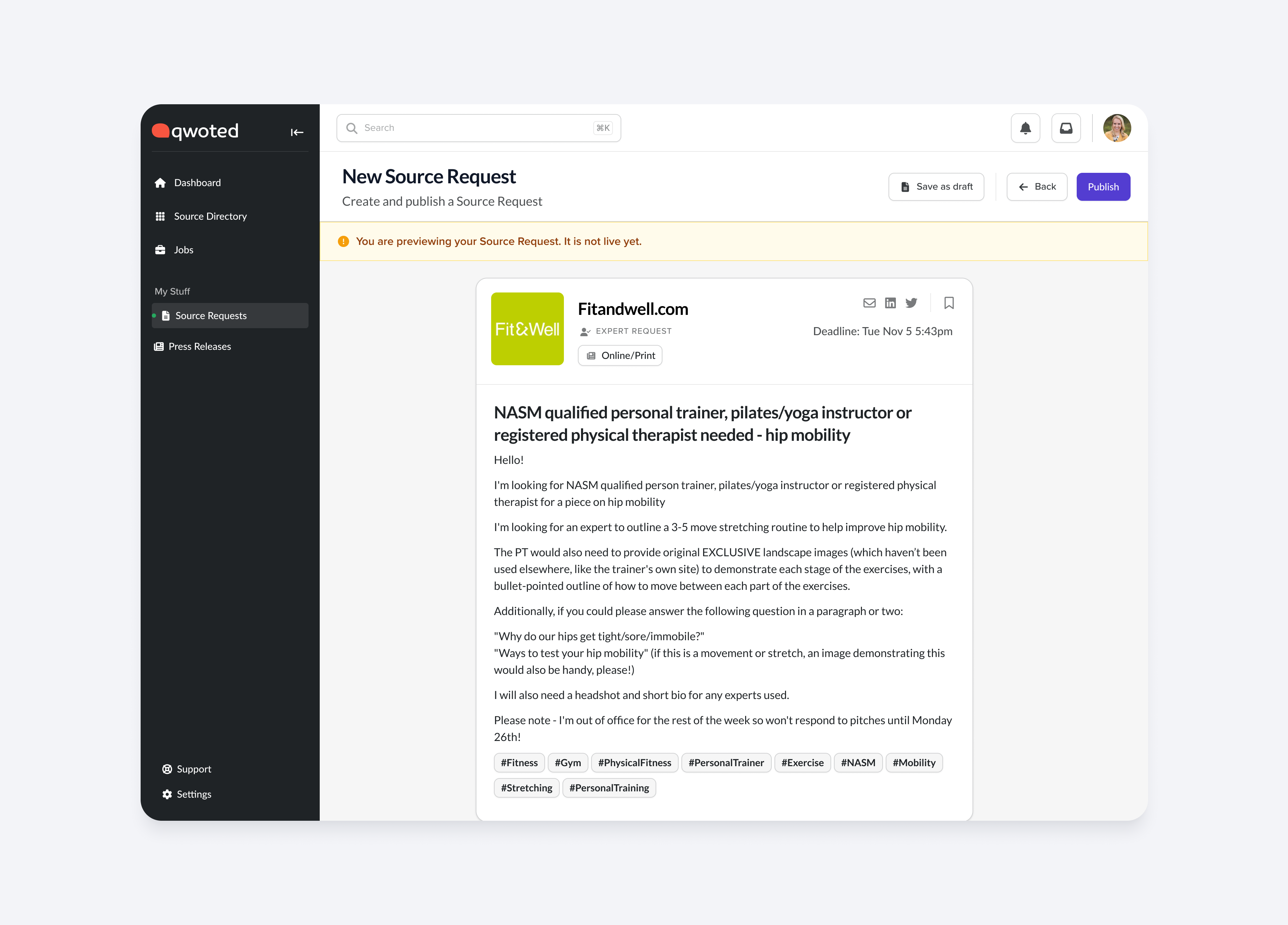 To address Qwoted’s usability and scalability challenges, I led a comprehensive redesign of the platform, focusing on creating a more intuitive, consistent, and user-centered experience.
